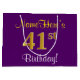 Elegant, Purple, Faux Gold 41st Birthday + Name Large Gift Bag