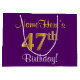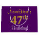 Elegant, Purple, Faux Gold 47th Birthday + Name Large Gift Bag