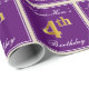 Elegant, Purple, Faux Gold 4th Birthday + Name Wrapping Paper