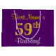 Elegant, Purple, Faux Gold 59th Birthday + Name Large Gift Bag