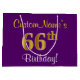 Elegant, Purple, Faux Gold 66th Birthday + Name Large Gift Bag
