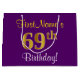 Elegant, Purple, Faux Gold 69th Birthday + Name Large Gift Bag