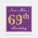 Elegant Purple, Faux Gold 69th Birthday + Name Napkin
