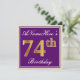 Elegant, Purple, Faux Gold 74th Birthday + Name Invitation
