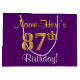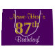 Elegant, Purple, Faux Gold 87th Birthday + Name Large Gift Bag