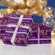 This simple and elegant wrapping paper design features a personalised message like "FirstName’s 92nd Birthday" (with the "92nd" having a faux/imitation gold-like colouring look) within a purple-coloured square area featuring a simple border outline. The name is in an elegant white-coloured script-like text, and can be customised. Wrapping paper like this could perhaps be used when wrapping birthday gifts for somebody who is celebrating their ninety second birthday. [~Z0000220]