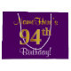 Elegant, Purple, Faux Gold 94th Birthday + Name Large Gift Bag