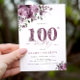 Step into a world of timeless elegance with our 'Elegant Purple Floral 100th Birthday Party Invitation.' This design is a masterpiece that beautifully captures the grace of a century lived and the promise of a milestone celebration. At its core, a regal array of purple blooms takes centre stage, their petals painted with delicate strokes, evoking a sense of refinement and enduring beauty. Each flower is a symbol of the strength and resilience that comes with the passage of time, a testament to a life richly lived. The typography, presented with finesse, narrates the story of a remarkable journey. Our Invitation is more than just an invitation; it's a tribute to a life filled with memories, love, and wisdom. It promises a celebration that is as enduring and beautiful as the one who has reached this remarkable age, a reflection of a life well-lived and a future filled with cherished moments. Most lettering is editable - click the "Customise Further" button to edit. Matching items are available.