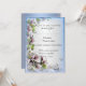 Pretty purple floral with a butterfly and blue background. This beautiful wedding RSVP/response card is all ready to be personalised for your special wedding day. Personalise the card by changing the text in the fields provided front and back. You can change font style, size, and colour, as well as paper type and style.