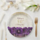 Elegant Purple Floral Gold 50th Birthday Party Paper Plate