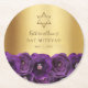 Elegant Purple Floral Gold Bat Mitzvah Round Paper Coaster
