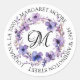 Elegant Purple Floral Script Monogram Address Classic Round Sticker