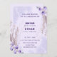 Invite your guests to your special day with this elegant wedding invitation featuring a beautiful purple floral design. The delicate floral accents add a touch of romance and sophistication to your announcement. Personalise the front with your wedding details, and on the back, include the names of the bride and groom along with the wedding date for a truly custom keepsake. This invitation is perfect for a classic, modern, or garden-themed wedding.