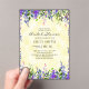 Elegant purple lavender watercolor floral on yellow clear acrylic bridal shower invitation. Contact me for assistance with your customisations or to request additional matching or coordinating Zazzle products for your shower.