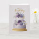 Elegant Purple & Gold Floral Birthday Cake Card