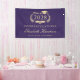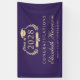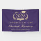 Elegant purple graduation party welcome banner featuring "Class of" in a gold illustration of laurel wreath, a gold grad cap and diploma, the graduate's name in a stylish gold script, and "Congratulations" and their school name in classic gold serif typography.