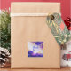 Make a vibrant and luxurious statement with this elegant floral thank you sticker. The design features a stunning, lush arrangement of flowers in rich, jewel tones of royal purple, deep violet, and bright magenta, reminiscent of beautiful hydrangeas. These vibrant blooms are artfully interwoven with brilliant, metallic gold leaves and delicate sprays of sparkling gold glitter, creating a magical, high-end, and enchanting feel. The entire floral frame surrounds a soft, dreamy, out-of-focus lavender background. At the centre, a minimalist, thin gold rectangular frame provides a sophisticated and clean focal point. These stickers are perfect for businesses that want to convey luxury and vibrancy, such as high-end event planners for sealing gala invitations, boutique florists for luxury arrangements, cosmetic or perfume brands for elegant packaging, or upscale jewelers. This versatile design can also be used to beautifully seal envelopes for glamourous weddings or milestone birthdays, or as a sophisticated accent on party favours and gift wrapping.