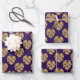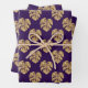Elegant Purple Gold Palm Leaf Pattern Wrapping Paper Sheets.