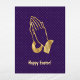 Elegant purple card with gold praying hands.