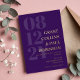 Elegant typography wedding invitation in purple with your wedding date in large numbers down the side of the invitation. Add names and wedding wording in gold foil. Gold foil and dark purple wedding invitation with your names in a large font.
