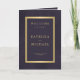 Modern simple minimalist typography dark purple and faux gold folded ceremony and party wedding program template on a vintage style antique distressed looking background. ++++++++++++ Easy to personalise with your text on the front, back and inside!