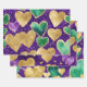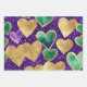 Elegant Purple, Green and Gold Hearts Mardi Gras Wrapping Paper Sheet