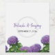 This elegant floral design features purple hydrangeas. The beautiful purple hydrangeas are complimented with their greenery. The bride's and groom's names are colour matched to the purple of the hydrangea flower and are encircled with three geometric rings. This is the perfect elegant floral wedding design ideal for any wedding theme. Elegant hydrangea flower wedding wine label design with modern elements. Matching wedding invitations and other stationery items are also available.