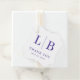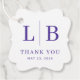 This elegant wedding favour tag features a minimalist design with a clean, white background and deep purple typography. The layout includes bold serif letters "L" and "B," separated by a thin vertical line, conveying sophistication. Below, the phrase "THANK YOU" is prominently displayed in uppercase, adding a touch of gratitude. Customisable date fields allow for personalisation, making it perfect for commemorating special occasions like weddings. The overall mood is formal and refined, ideal for expressing appreciation at your event.