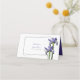 This elegant floral design features purple irises. The beautiful purple irises with their green stems are placed on top of a geometric thin line border. One the reverse of the place card the bride's and groom's names are colour matched to the purple of the iris flower. This is the perfect elegant floral wedding design ideal for any wedding theme. Elegant iris flower wedding place card design with modern elements. Matching wedding invitations and other stationery items are also available. Easy to personalise with your details. Hand write your guest names and table number in the space provided.
