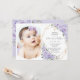 Personalize this elegant soft lavender purple floral baptism/ christening photo invitation with your own wording easily and quickly. Simply click the customize it further button to edit the texts, change fonts and fonts colors. Matching items available in store. (c) The Happy Cat Studio
