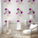 Elegant Purple Magnolia Flowers with Gold Floral Wallpaper