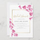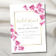Branches of purple orchids, hand-painted in watercolor, intertwine over a classic, traditional gold frame in this simple but sophisticated, elegant yet chic bridal shower invitation. The hint of gold in the colour of the calligraphy, as well as the discreet gold frame (this is a digital effect) give this a festive but subdued splash of colour.