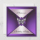 Invitation Elegant Purple Birthday Party White and Silver Metal with Silver and Pearl ButterflyJewel. Party simple, clean, design, Adult Corporate