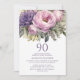 Elegant Purple Pink Floral 90th Birthday Invitation