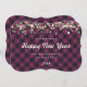 Purple buffalo plaid New Year card featuring glowing lights and stars on a purple buffalo plaid background.