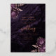 This elegant wedding invitation features purple floral bouquets set off with rose gold faux foil greenery in two corners, on a background image of purple watercolor agate. The customisable text combines real rose gold foil serif, italic and handwriting fonts. The reverse side features a matching purple and rose gold floral and agate design.