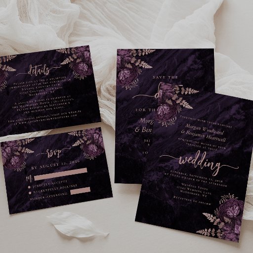 Purple Rose Gold Floral Script Wedding SuiteDesigned by Akhates Designs