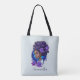 This elegant and trendy design features a beautiful Afro-American girl with purple floral decorations in her hair. You can personalise it with your name written in elegant calligraphy. It is also a perfect gift for strong, independent Afro-American women.