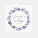 An elegant floral border of watercolor purple roses frame this chic winter wedding napkin with a beautiful circle shape bordered with violet flowers and lavender botanical leaves. Perfect for an evening affair.