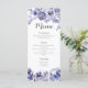 Elegant watercolor purple roses frame this chic wedding dinner menu. The custom menu features a beautiful border violet flowers and lavender botanical leaves at the top and bottom around your list of appetizers, entrees, and dessert. Let guests know about your starters, main course, and desserts.
