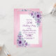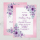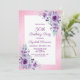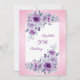 Elegant watercolor purple roses flowers and vibrant typography on glitter pink background birthday invitation.