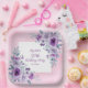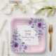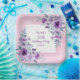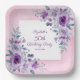 Elegant watercolor purple roses flowers and vibrant typography on glitter pink background birthday paper plate.