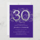 Elegant purple silver 30th birthday party invitation. Customisable modern feminine design featuring roses botanical accents and faux glitter silver. Simple floral invite card perfect for a stylish female bday celebration. Personalise with your own details. Printed Zazzle invitations or instant download digital printable template.
