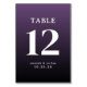 This elegant wedding table card features a sophisticated gradient background transitioning from deep purple to a lighter shade, creating a modern and formal atmosphere. The design highlights the number "12" in bold white serif font at its center, with the word "TABLE" above it in smaller uppercase letters. Below, customizable text fields allow for personalization with names and dates in clean sans-serif typography. The minimalist layout emphasizes clarity and style, making it perfect for adding a touch of contemporary elegance to your event decor.