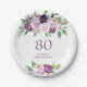 Elegant Purple | Violet Floral 80th Birthday Paper Plate