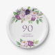 Elegant Purple | Violet Floral 90th Birthday Paper Plate