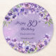 Elegant Purple Violets Floral Happy 80th Birthday Round Paper Coaster