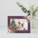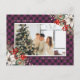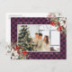 Elegant purple buffalo plaid photo Christmas postcard featuring a purple plaid photo frame adorned with a watercolor painting of poinsettia, holly and red berries. Easily personalize this purple Christmas postcard with your photo and text.