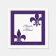 Personalise these paper napkins featuring two Fleur de Lis symbols in a bold, elegant purple and white design. Perfect for your New Orleans wedding event!