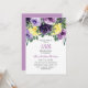Elegant botanical 18th birthday party invitation for women with pretty purple and yellow watercolor flowers and greenery. Personalised with your own text.